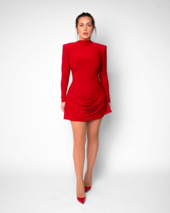 E veshur me fustan të kuq e të ngushtë, aktorja vë në pah linjat e saj trupore në top formë.